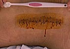 今日は午前中に消毒。これ、患部です。歯ブラシと一緒に撮ってもらいました。