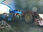 畑脇の屋根の下には、トラクターなどなどなど。私は動かしかた、うーむ、忘れていないと思う。今日は畑の測量したのみ。