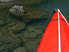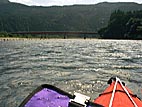 11:40頃から昼食停滞。実は、背後に見える岩に張り付きかけて沈。センターキールを曲げてしまった。調子に乗って難しいルートをとろうとしたのが原因。いかんいかん。航行に支障なし。ここでは13時くらいまで休憩。