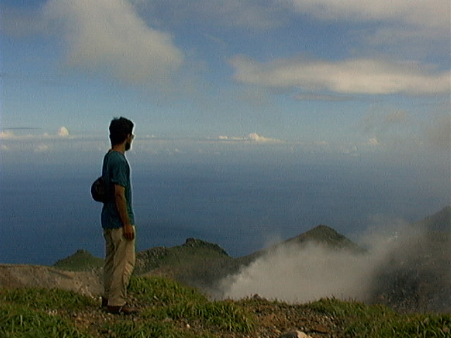 山頂からの眺めは、噴火口と集落。天気はいいんだけど、ガスがかかって遠くが見通せないことも。