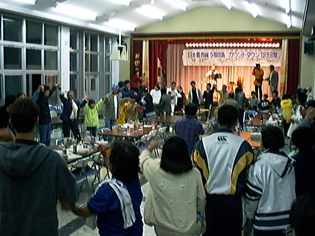 カウントダウンを前に、「どぅんた」ということになり、会場に残った人、50人くらい(うち観光客は10人程度)、手をつないで輪になって踊る。