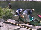 中洲はテント村と化した。対岸に、今年10月に屋久島で会った旅人が建てた新居があり、襲撃して御寿司をゲット。