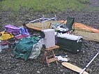 テントサイトへ戻ってみれば、タープが飛ばされていた。しかも、1.5mも水位が上がっており、テントの移動を余儀なくされる。