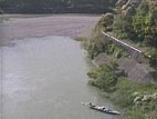 口屋内の沈下橋。5/3には、たもとのキャンプ場がテントで埋め尽くされていました。今は半分水の中。