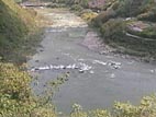 橋の上から当初のキャンプサイトを見てみると、、、、水没してる!