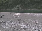今日のキャンプ地である仁淀川(四万十川の隣りの川)の河原。ここでは、手長エビを手掴みしました。石をどけるといるのだ。