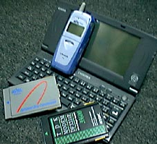 CASSIOPEIA A-55V(20MBコンパクトフラッシュ装備)、PHS(AP-15)、ASTEL DATA CARD XN-11、TDK MODEM DF3314E その他に、DS-8、PC-AD、2MBスマートメディアx2、4MBコンパクトフラッシュx2、コンパクトフラッシユ・プラットフォームアダプターを使用