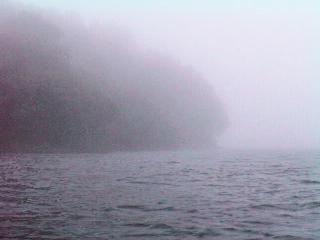 私以外は30分くらいで入り江に上陸。私だけが一時間くらい湖を散策したのだが、岸を見失いそうなくらいの霧に阻まれて、あえなく撤退。