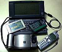 CASSIOPEIA A-55V(20MBコンパクトフラッシュ装備)、DDI Poket(SANYO PHS-J80)、SII MC-6550、TDK MODEM DF3314E、CASIO QV-10、データ転送ケーブルSB-62