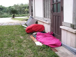 食事の後、おっちゃんに呼ばれ、おっちゃんの小屋の中で、いかんいかんと思いつつ飲んでしまって、寝たのはなんと5時過ぎでした。