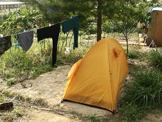 シュラフカバー寝をしようと思ったのだが、一週間前におじさんの猫がハブに噛まれた(猫は死ななかったけど)というはなしを聞き、おNewなテントを張ることに。