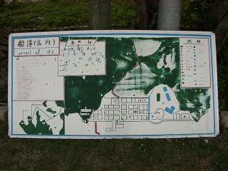 集落の案内板。人口48人で、素泊まり民宿一軒。学校もある