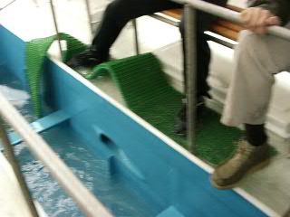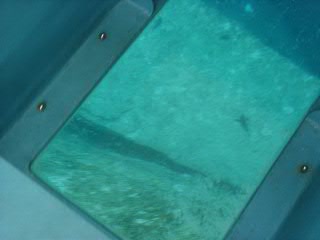 船長は船に何やら仕掛けをし、小型の電動ポンプを出してきた。グラスボートのグラス部は、バスタブのような構造になっているので、そこになみなみと海水がたまってしまっているのだ。これではスピードが出ないし、下手すりゃガラスが割れてしまう。エンジンルームの排水は平気だろうかと気になった。