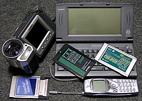 CASSIOPEIA A-55V(20MBコンパクトフラッシュ装備)、DDI Poket(SANYO PHS-J80)、SII MC-6550、TDK MODEM DF3314E、CASIO QV-8000SX、CF-PCカードアダプター