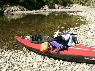 14時過ぎに目星をつけて上陸。河原を横切り堤防を越え、畑仕事をしていた人に聞いたら、温泉まで徒歩なら15分くらいかかるという。場所を聞くと、どうやらもうひとつ瀬を越えてから上陸した方が良さそうだ。