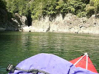 12時に最初の橋、瀞橋へ到着。昼飯の準備にとりかかりつつ、原稿を書く。