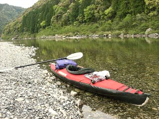 今日もなるべく漕がないように進み、予定通り1時間後の10:30に休憩後(船底からの浸水を調べるために、1時間に1回くらいは上陸したいのだ)、11:30に昼食上陸。