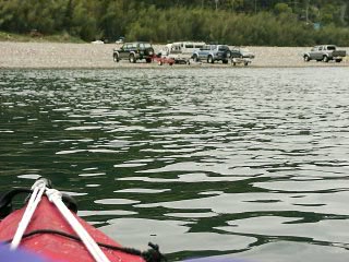 少し下流にトレーラーを装備した彼らの車があった。驚いたことに、ナンバーを取得しなければならないはずのトレーラーは、4台中3台までがナンバー無しだった。これでは、小型船舶免許も持っているか怪しいものである。(ちなみに私は4級を持ってます)