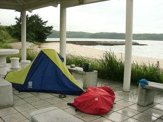 昨夜、時々強い雨が降って何度が目覚めた。屋根の隙間の下にテントがあるので(そう張るしかなかったのだ)、結構な音がしたのだ。