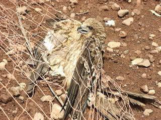 網にからまった鳶