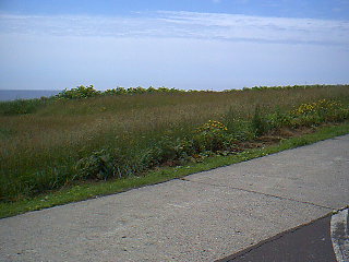 ところが、そこにはトイレはあるものの水が出ず、テントサイトは草が生え放題。シーズン前だからか、まったく整備されていなかった。近くの海水浴場(とはいえ磯場)の更衣室脇の蛇口は水が出たというのに。