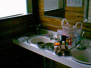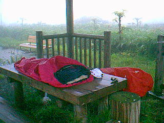 トイレでの雨宿りを禁止されたのは初めてだったのだが、反抗してもしかたがないので、しぶしぶ宿泊に使った屋根のあるテーブルに移った。
