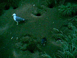 ウトウの帰りを待つウミネコたち
