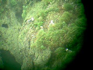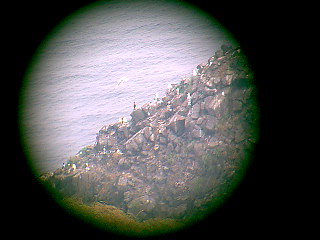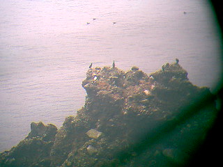 午前中、霧の晴れたわずかな時間で、望遠鏡にデジカメを押しつけて撮影。オオセグロカモメの子育て