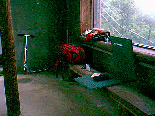 街までたった4kmなので、荷物を残して電話と買い物に行って戻っても、何の問題もないんですけどね。帽子から靴に至るまで、ゴアテックスで武装しているのだし。(しかも、行きは下り坂なのでレーザーですいすい〜)