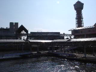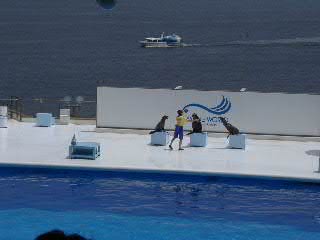 アシカショー。奥に見えるのが、対岸の博多港への連絡船