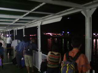 厳原港へ到着。右の明かりはイベント会場の解体作業