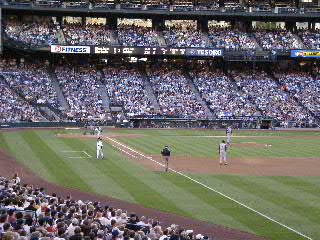タクシーで、マリナーズ対ブルージェイズ戦が行われるSAFECO FIELDまでは15分くらいだった。メーターは7.5ドルで、トランクから荷物を出してくれていた中米系の運転手に20ドル札を渡したら、5ドル札2枚でおつりをくれた。15%のチップを含めて妥当な値段だったのだが、親切だったので、もう5ドル渡した。