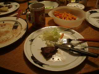 IOさんの知人宅では歓迎され、カリブーの肉やコーヒーをごちそうになった。(もちろんカナダ人ご一家なので、私とはほとんど言葉は通じない)