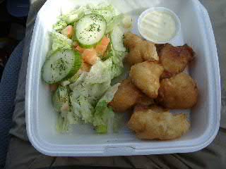 道を間違え、一時間以上のロス。でも、うまい魚フライにありついた