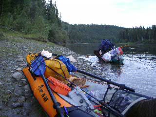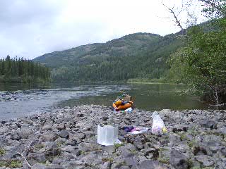 川の上でクッキーのような栄養食を食べ、ウイスキーを飲み、ビーフジャーキーをかじった。