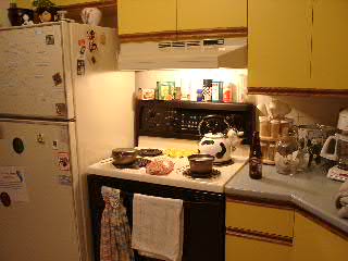 私は、キッチンでインスタントラーメンとご飯の夕食。