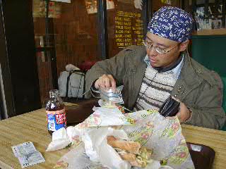 レンタカーを返し(日本でいうトヨタキャバリエ、こちらではシボレーを地元のレンタカー屋で借りたのだが、基本+保険+距離追加分で約200ドル)、バス会社(グレイライン)の事務所へ行くと乗れるか判らないという。20分後にまた行くことになって、時間潰しも兼ねて、みたびサブウェイで食事。