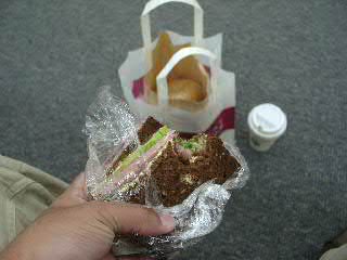スターバックスでコーヒー、サンドイッチ、パンを買い(昨日の売れ残りハーフプライス品も買った)、フェリーターミナルで食した。