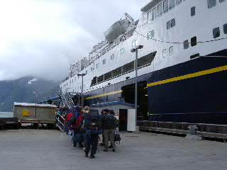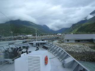 突然書いたのは、フェリーが最初の寄港地、Hainesに着いたから。