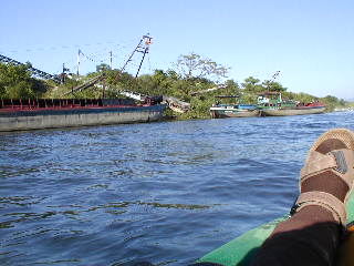 少しでも風を避けようと、岸に沿ってとろとろ進む。