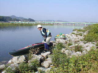 11km下り(GPS読み)、11時に橋の下に昼食上陸。周りでは、常に2ファミリーくらいが入れ変わり遊んでいた。