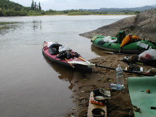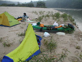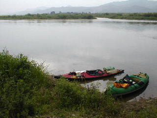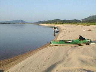 なかなか上陸ポイントがみつからなくて(木陰がなかなかない)、13時すぎ、ようやく昼食上陸。25km進んだ。