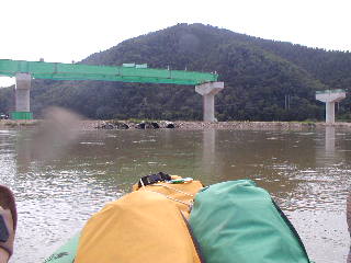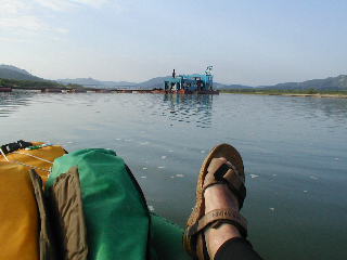 土砂採掘船も川をふさいでいて恐かったけど、ワイヤーをゆるめて通してくれました