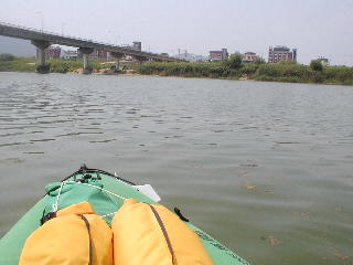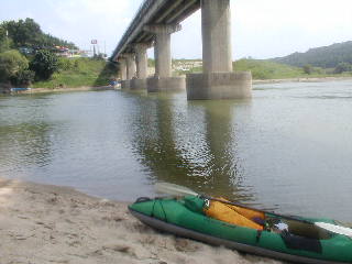 途中負い風もあって意外に進み、1015に、あらかじめ決めてあった待ちあわせの橋の下に到着。17kmすすんだ。途中、沈下橋をくぐったくらいがイベントで、あとは何もなし。流速は2kmほどか。
