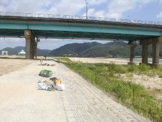 ところが、城後さんの提案で予定を変更し、先にプサンへ流れ込む川の上流をやった。