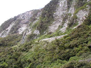 左が崩れた道。右が集落への道