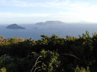 下山は、島の南側にある南ケ山園地へ降りる予定だったのだが(山頂付近の看板には、ルートはそれだけで、他は使うなと書いてあった。そういうことは、もっとわかりやすい所へ掲示して欲しい)、道を間違えて、北西方向で周回道路に出た。