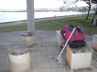 面倒なので、私は道を挟んだ海側のベンチで夕食。