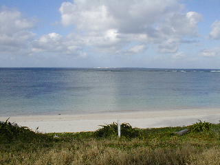 道路を渡れば素晴らしい砂浜で、12km沖には水納島も見える。