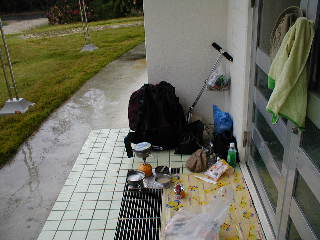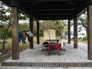 昨日以上に濡れてしまったので、ロープを張り、すっ裸になって着ていたものを全部干した。